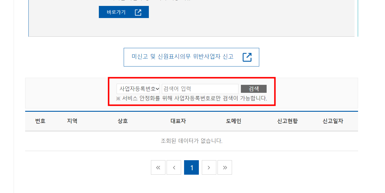 클릭 후 스크롤을 내리시면 사업자등록번호로 검색하는 공간이 나옵니다.