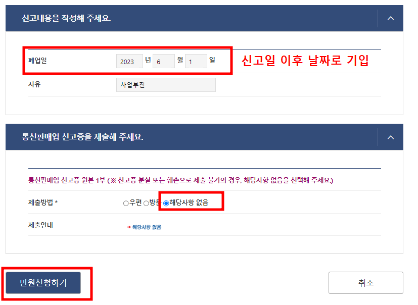 통신판매업자 폐업 신고하기